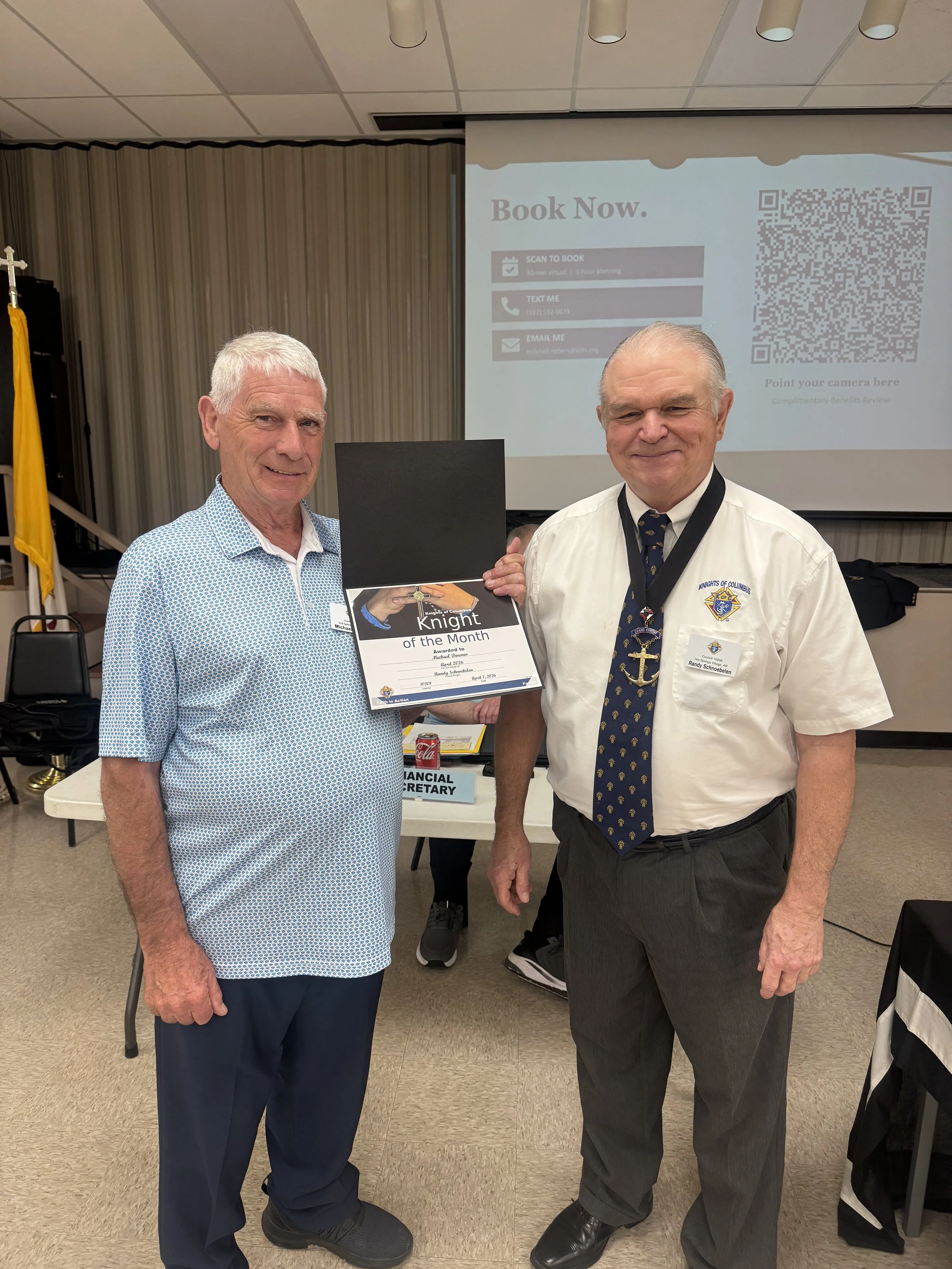 Michael Downes - RECEIVING KNIGHT OF THE MONTH AWARD