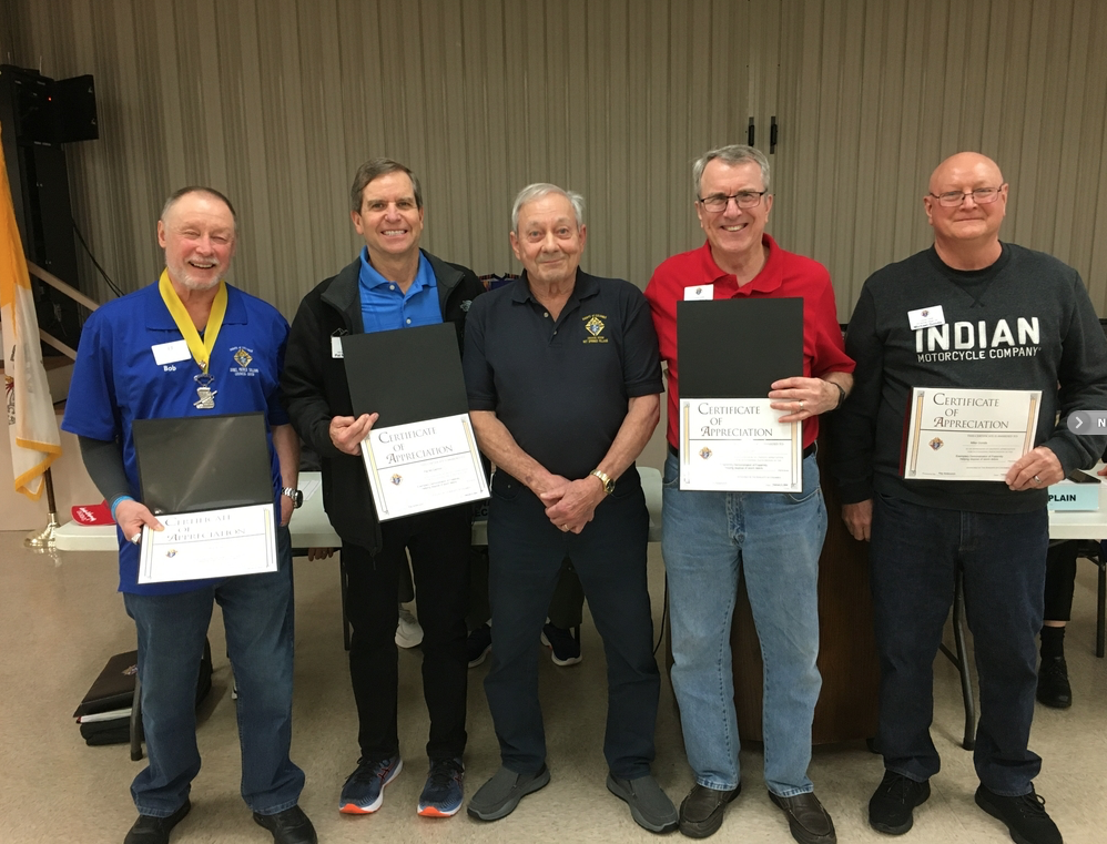 While Ambrozich was on a cruise (lucky them), a storm came through and had some trees fall on his house during the Ice and Snow Storm. He gave Brother Knight Rick Darnell a call for help!! Rick put the word and several Knights came to his aid moving the wood from his house and on to the Golf Course where the POA was picking up debris. In recognition of their diligence, special awards were given out at the February Council Meeting.